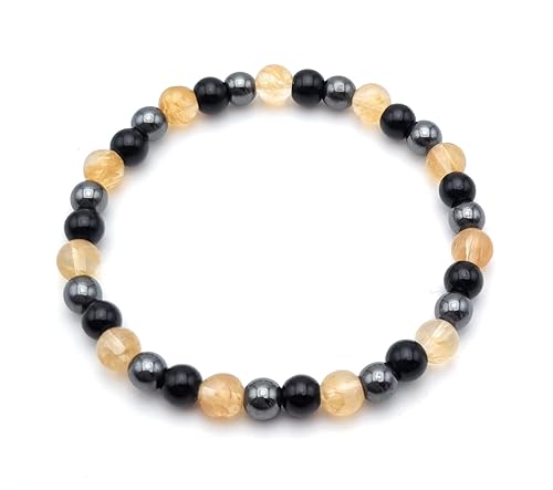 Le bracelet agit grâce aux propriétés naturelles des pierres d'hématite, d'agate noire et de citrine. L'hématite est réputée pour soulager les douleurs articulaires et dorsales, tandis que l'agate noire aide à équilibrer les énergies et à réduire le stress. La citrine, quant à elle, favorise la relaxation et améliore l'humeur. En portant ce bracelet, vous bénéficiez de l’effet combiné de ces pierres pour un bien-être global.
